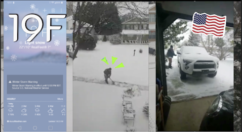 ภาพถ่ายหลังมิสเตอร์ออกไปทำงาน และกวาดทางเดินกับถนนแล้ว หิมะยังจะตกอีกแน่นอนจากพยากรณ์อากาศด้านล่าง