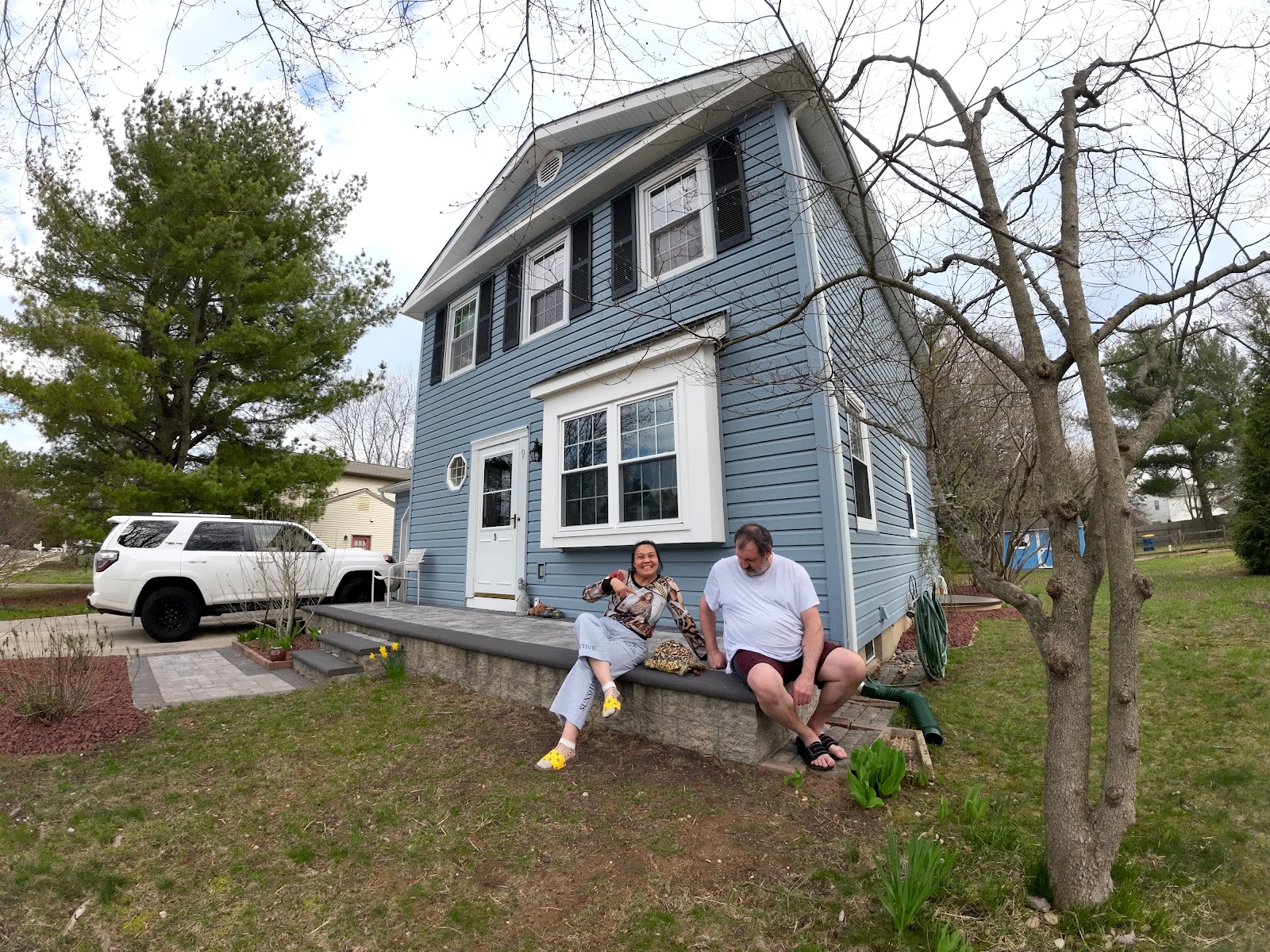 Bucky was on the deck when I checked but he jumped off when I went inside the house. I found him in front of the house. Great, he did not walk far away. We have to be careful not leave him alone on the deck. My husband told, he also jumped off the front porch. He saw Bucky did that.
